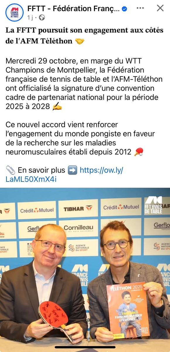 La FFTT partenaire de l’AFM TÉLÉTHON